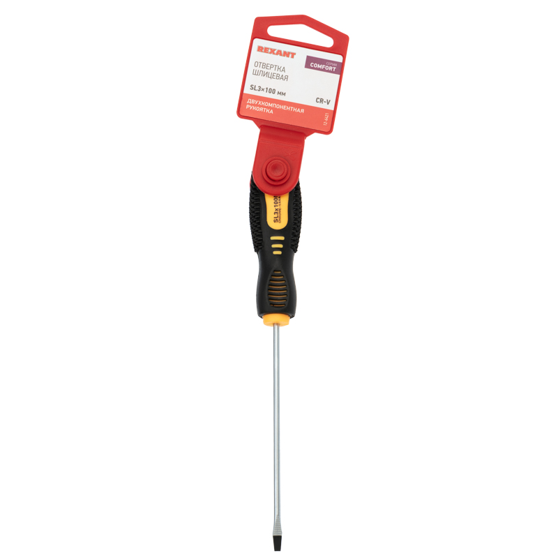 Отвертка шлицевая SL3х100мм, двухкомпонентная рукоятка REXANT
