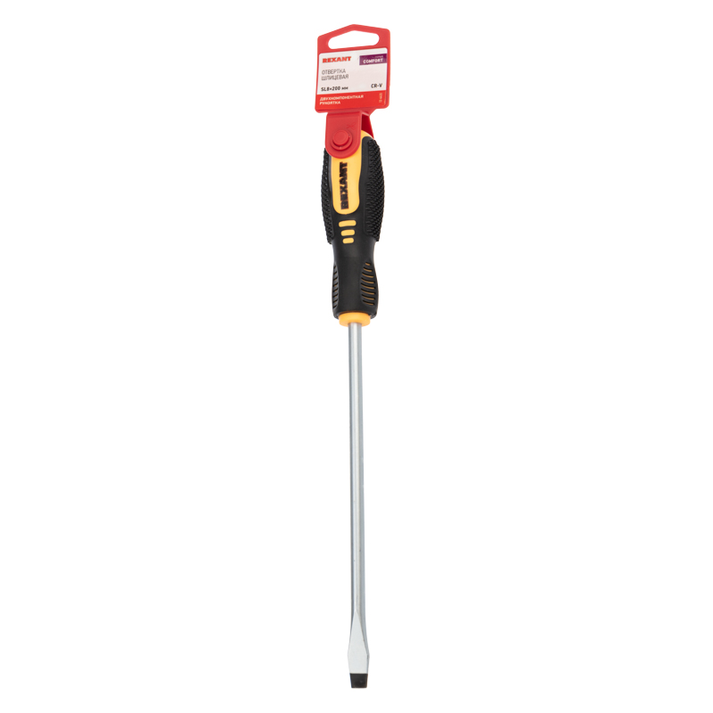 Отвертка шлицевая SL8х200мм, двухкомпонентная рукоятка REXANT