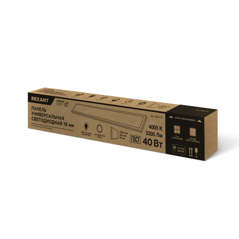 Панель ГОСТ! универсальная светодиодная 19мм ОПАЛ 1195х180 40Вт 180–260В IP20 3300Лм 4000K нейтральный свет REXANT