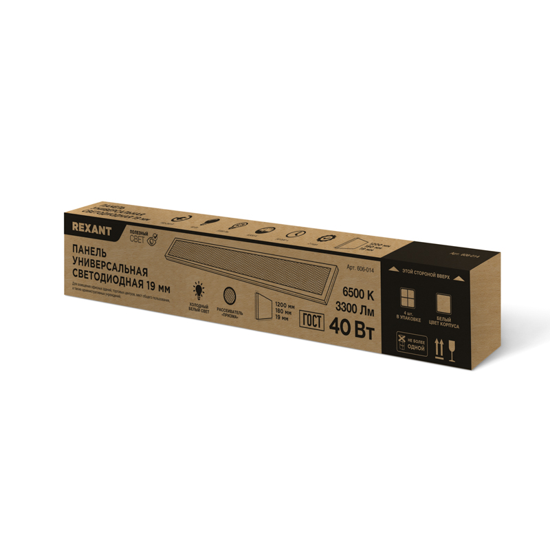 Панель ГОСТ! универсальная светодиодная 19мм ПРИЗМА 1195х180 40Вт 180–260В IP20 3300Лм 6500K холодный свет REXANT