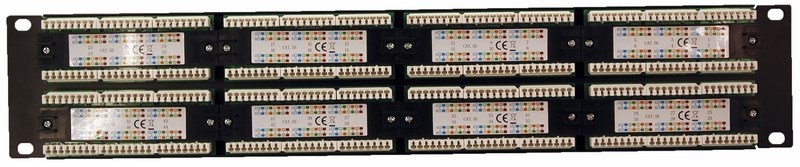 На лицевой стороне расположены 48 неэкранированных портов RJ-45. На тыльной стороне находятся IDC-коннекторы, предназначенные для фиксированного соединения с кабелями. Все разъемы пронумерованы, предусмотрена цветовая и цифровая индикация.