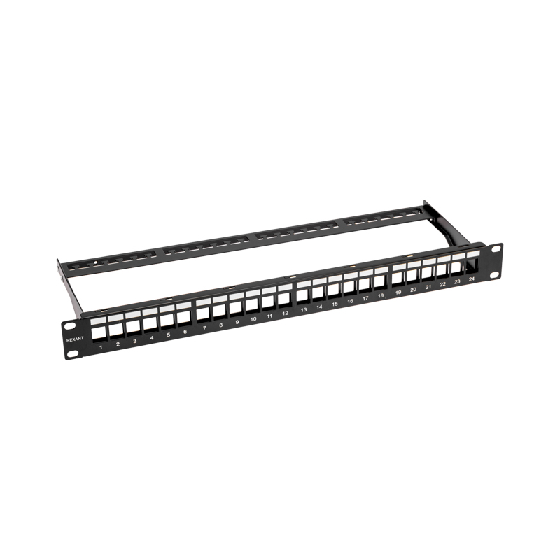 Содержит 24 порта: позволяет совмещать в своем корпусе разъемы разных видов (Keystone, RJ45 и т. д) и категорий (5е,6 и т. д).