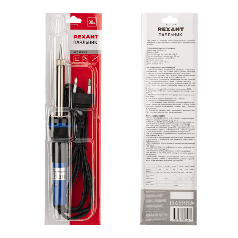 Паяльник с долговечным жалом мощностью 30Вт REXANT предназначен для ручного монтажа/демонтажа электронных компонентов и других мелких деталей. Подходит как для любительского, так и для профессионального использования. Долговечное жало паяльника состоит из медьсодержащего сердечника, покрытого слоем электролитически осажденного железа, отличающегося высокой стойкостью к коррозии. При соблюдении ряда предосторожностей жало способно работать длительное время без утраты эксплуатационных свойств, а в случае необходимости его можно легко и быстро заменить (сменное жало в комплект не входит).