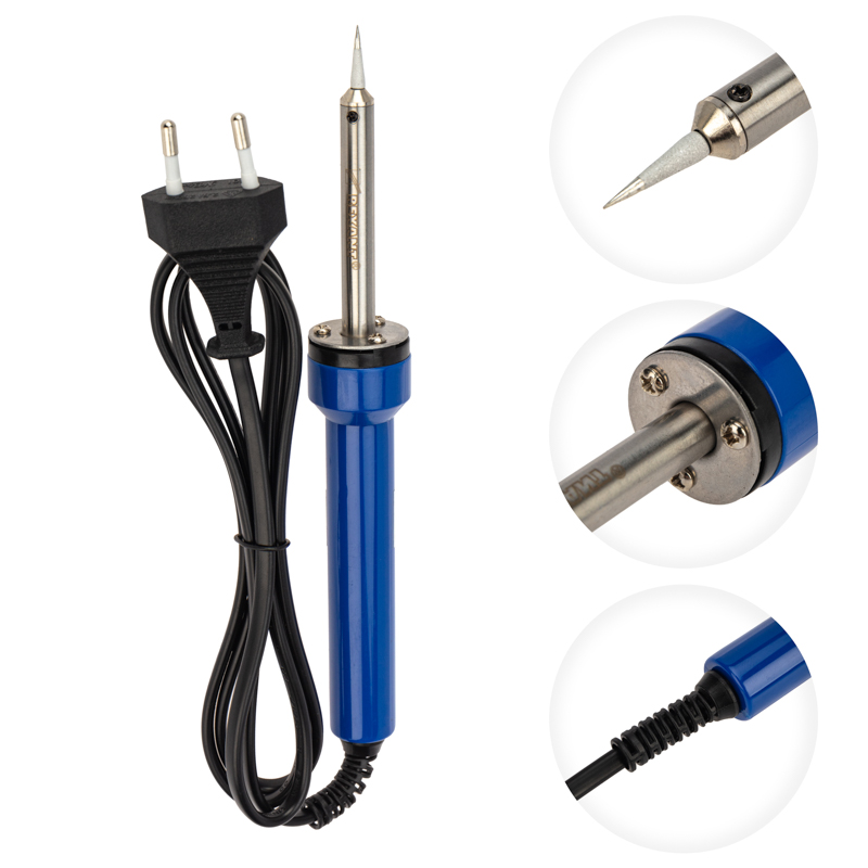 Паяльник оснащен ударопрочной рукояткой из термостойкого пластика, которая сделает работу с инструментом легкой и приятной.