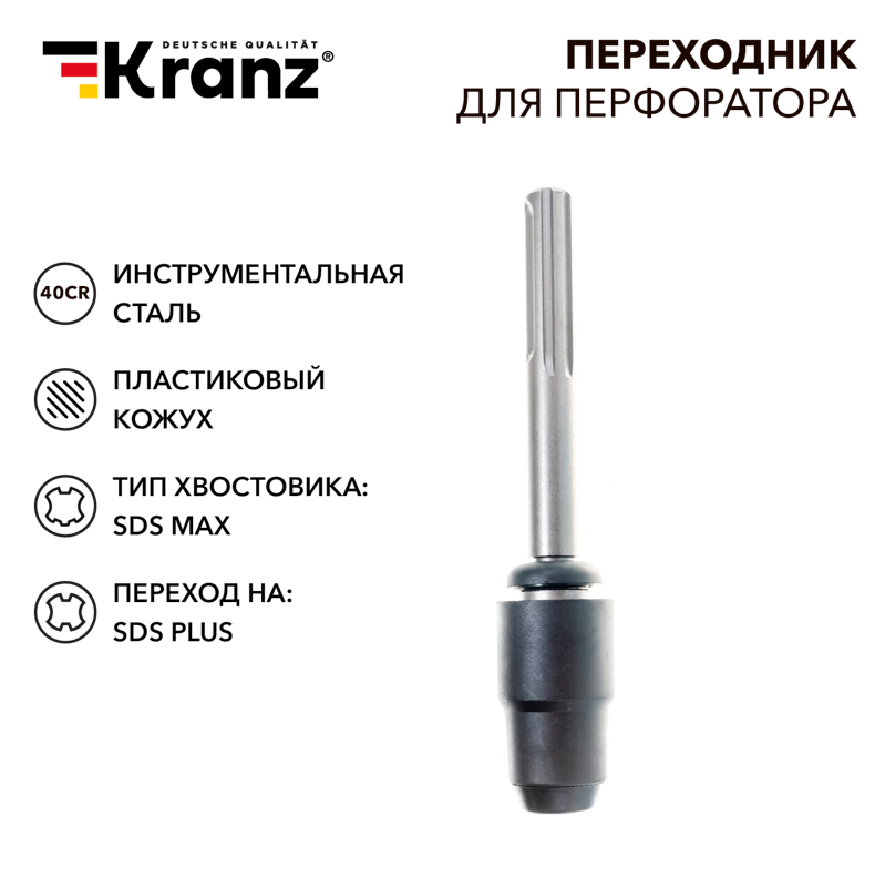 Переходник для перфоратора с пластиковым кожухом устанавливается на перфораторы SDS MAX для использования сверл с хвостовиками SDS PLUS, что значительно расширяет возможности использования различной оснастки. Изделие произведено из стали, легированной хромом и молибденом, что гарантирует долгий срок службы и высокую производительность оснастки. Переходник оснащен пластиковым кожухом, который защищает от пыли, возникающей при сверлении.