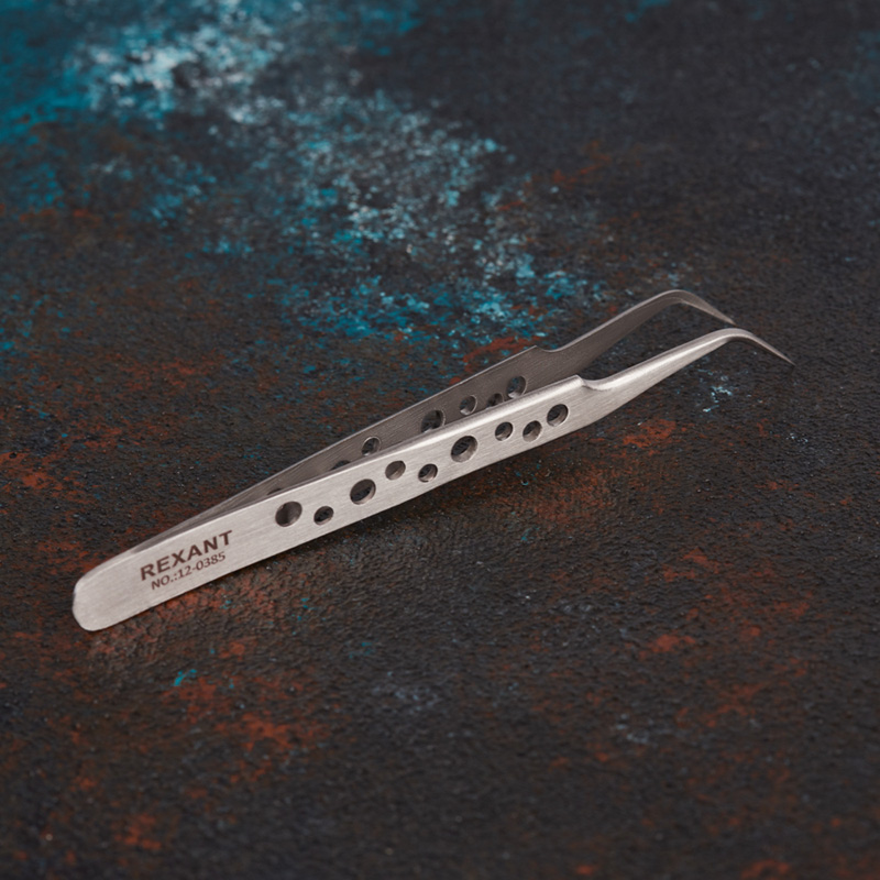 Стальной пинцет REXANT Airy используется для проведения манипуляций с различными небольшими предметами и деталями, такими как крепеж, шестеренки, марки, драгоценные камни и пр. Широко применяется в паяльных и ручных работах, сборочном производстве, филателии, ювелирном деле, робототехнике, промывке золота и т. д.