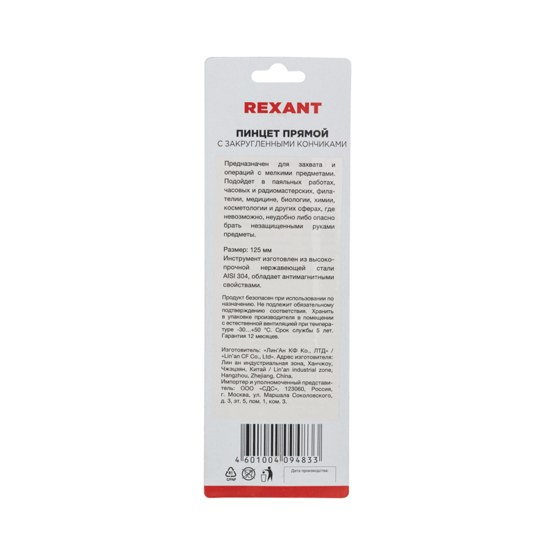 Стальной пинцет REXANT с прямыми закругленными концами используется для проведения манипуляций с различными небольшими предметами и деталями, такими как крепеж, шестеренки, марки, драгоценные камни и пр. Широко применяется в паяльных и ручных работах, сборочном производстве, филателии, ювелирном деле, робототехнике, промывке золота и т. д.