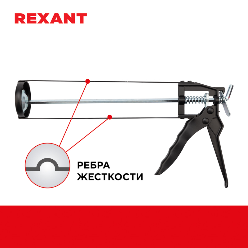 Скелетный пистолет для герметика REXANT используется при строительных и ремонтных работах, когда необходима качественная герметизация отверстий и швов.