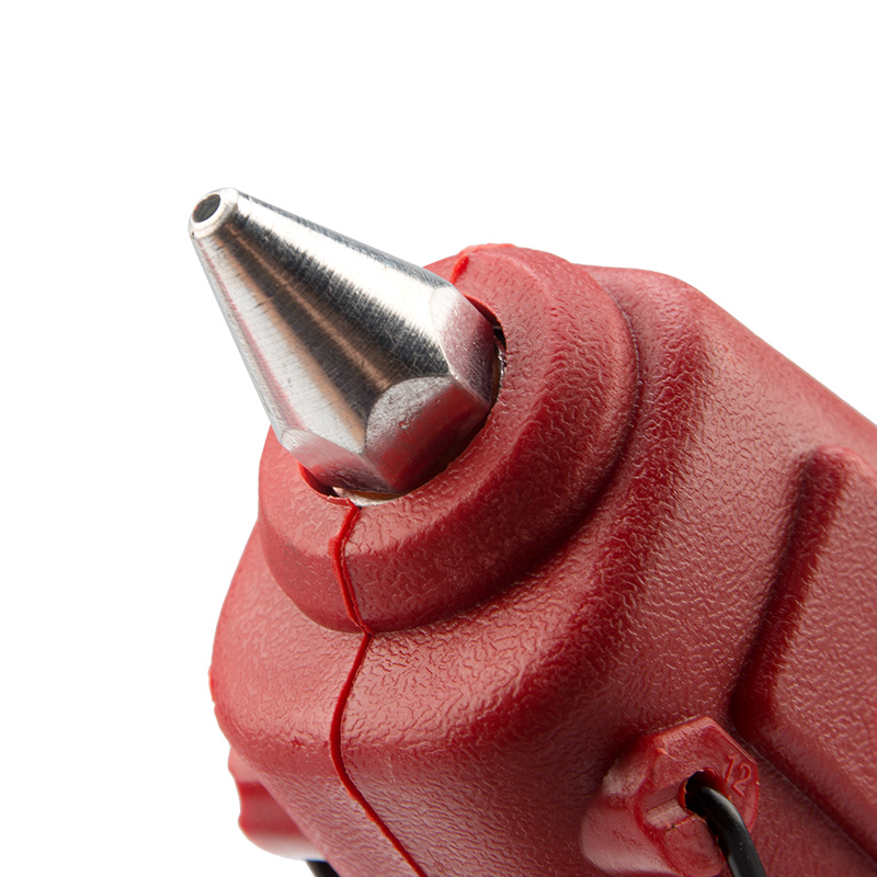 Корпус пистолета изготовлен из ударопрочной пластмассы, поэтому инструмент служит дольше, а металлическая скоба позволяет устанавливать пистолет в режиме ожидания. Сопло пистолета защищено клапаном от произвольного вытекания клея. На корпусе пистолета есть кнопка включения, благодаря которой пользователю удобнее контролировать использование пистолета. Также на корпусе есть индикатор, который показывает, что включен режим нагрева. Пистолет используется с клеевыми стрежнями диаметром 11 мм.