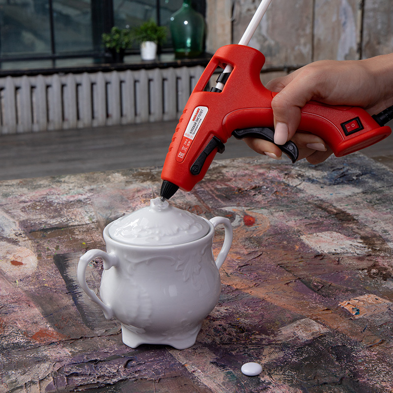 Клеевой пистолет предназначен склеивания поверхностей различных материалов, герметизации стыков и швов, фиксации проводов с помощью расплавленной клеевой массы. Используется в ремонте, декорировании, в изготовлении поделок и моделировании; будет полезен как на производстве, так и в быту.