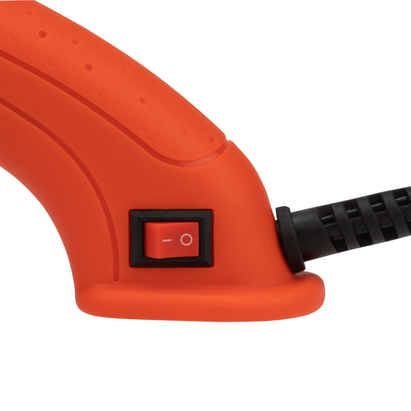 Корпус пистолета изготовлен из ударопрочной пластмассы, поэтому инструмент служит дольше, а специальная скоба позволяет устанавливать пистолет в режиме ожидания. Эргономичная рукоятка обеспечивает комфортный и надежный захват инструмента. Сопло пистолета защищено клапаном от произвольного вытекания клея и оснащено термостойким силиконовым протектором, минимизирующим риск ожогов при случайном контакте и защищающим рабочую зону от высокой температуры. Автоматическое регулирование температуры внутри плавильной камеры позволяет поддерживать оптимальную для клеевых стрежней температуру. На корпусе пистолета есть кнопка включения, благодаря которой пользователю удобнее контролировать использование пистолета. Провод длиной 1,4 метра позволяет работать на удобном расстоянии от розетки. Пистолет используется с клеевыми стрежнями диаметром 7 мм.