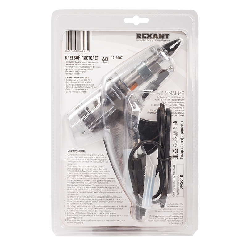 Комплектация: клеевой пистолет (1 шт.), паспорт (1 шт.).