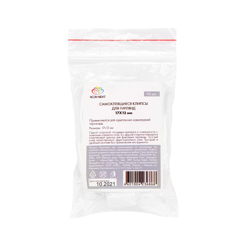 Самоклеящаяся площадка 17х12 мм с клипсой предназначена для крепления новогодней гирлянды.