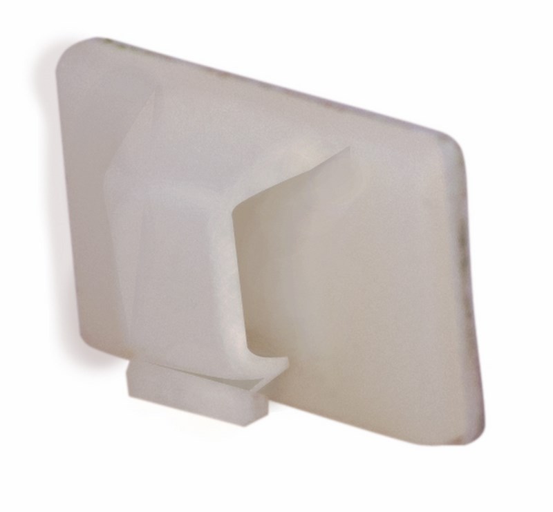 Площадка выполнена из белого пластика, на одну сторону нанесен клеевой слой, с помощью которого изделие крепится к поверхности, а с другой стороны находится пластиковая клипса для фиксации шлейфов и проводов. Может также использоваться для крепления других нетяжелых предметов. Быстро и просто монтируется без применения инструментов.