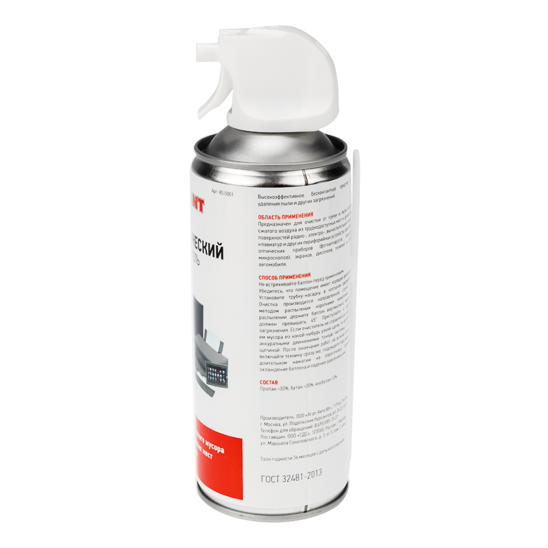 Пневматический очиститель DUST OFF REXANT предназначен для удаления пыли и других загрязнений направленным потоком сжатого воздуха. Рекомендуется для эффективной бесконтактной чистки чувствительного электронного оборудования и компонентов, устройств обработки данных, персональных компьютеров, экранов, дисплеев, оптических приборов, фотографических материалов, микроскопов и лабораторного оборудования. Используется везде, где необходимо удалить загрязнение и пыль, не оставляя следов, при этом исключая опасность испортить покрытие. С помощью прилагаемой в комплекте трубки мелкие частицы мусора сдуваются направленной струей газа. Пневматический очиститель является хорошей альтернативой очищающим средствам на основе растворителей.