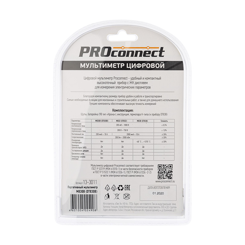 Комплектация: мультиметр, измерительные щупы, батарея, инструкция, упаковка.