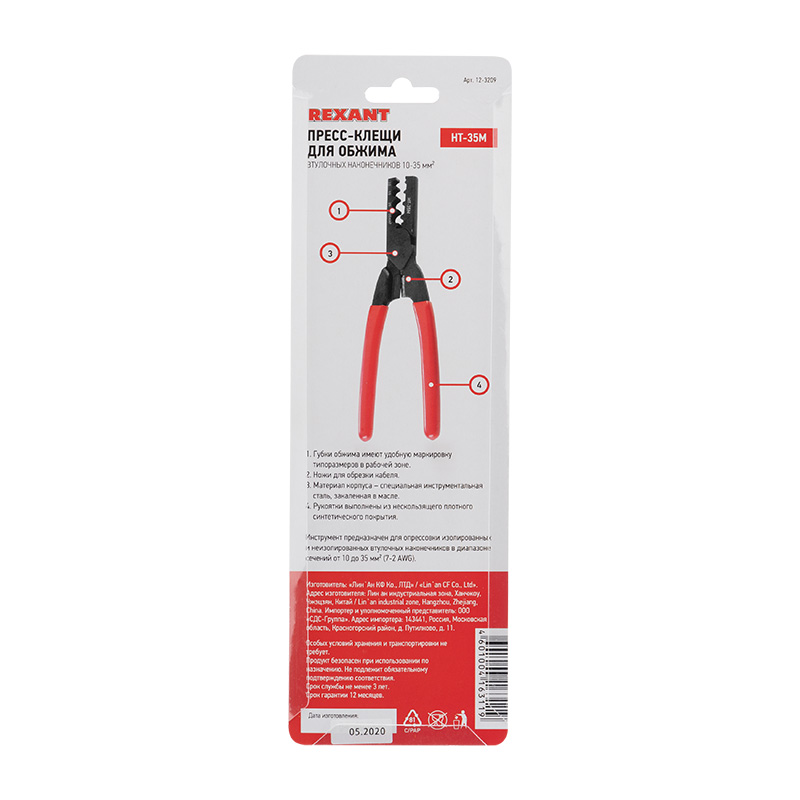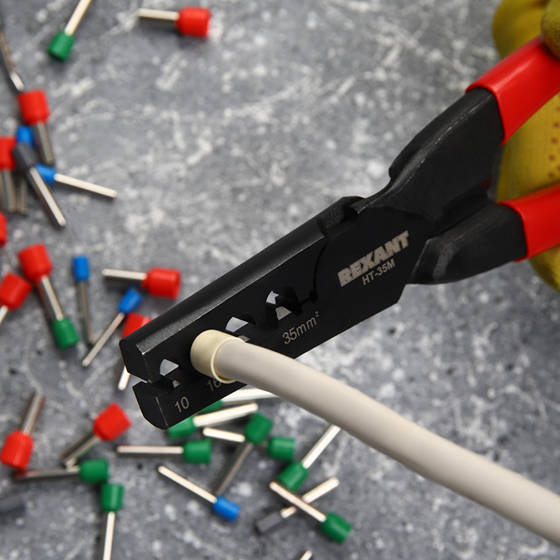 Пресс-клещи HT-35M предназначены для обжима изолированных и неизолированных втулочных наконечников с диапазоном сечения 10–35 мм².