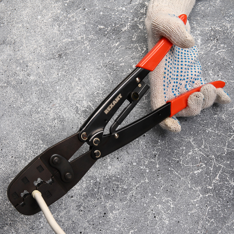 Корпус пресса изготовлен из закаленной инструментальной стали с воронением, благодаря чему устойчив к механическим воздействиям и имеет продолжительный срок службы. Профилированные пятипозиционные обжимные губки предназначены для надежного захвата и эффективного обжима соединительных элементов. Храповой механизм производит полный цикл качественной опрессовки. Конструкция, выполненная по принципу "двойной рычаг", позволяет прикладывать меньше усилий для обжима. На губки нанесена справочная маркировка для удобного и быстрого поиска нужной позиции в матрице. Однокомпонентные защитные рукоятки выполнены из плотного нескользящего синтетического материала, который делает работу с инструментом легкой и приятной.