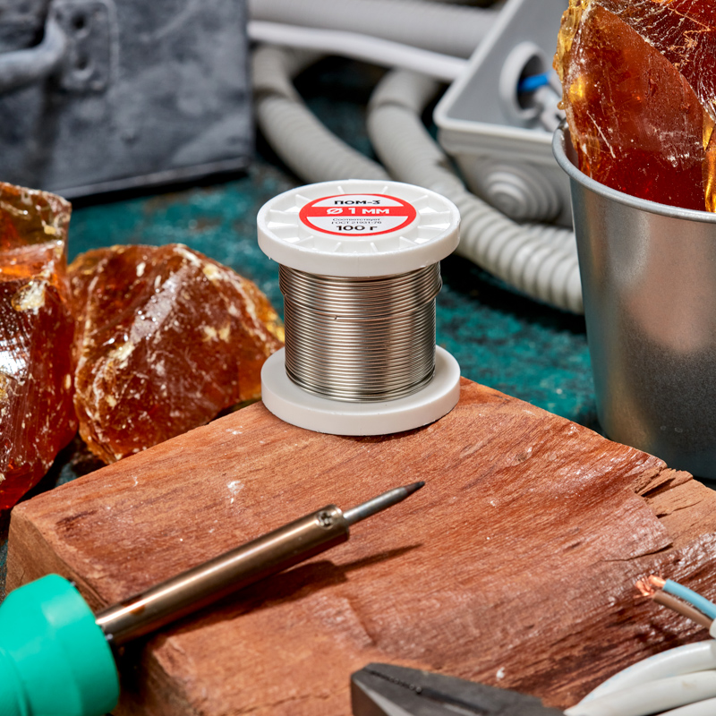 Припой ПОМ-3 представляет собой композицию из 97% олова и 3% меди (Sn97Cu3). Из-за специфики применения в большей степени используется в условиях профессиональной пайки.