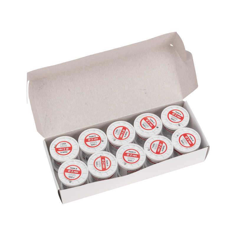 Припой ПОМ-3 представляет собой композицию из 97% олова и 3% меди (Sn97Cu3). Из-за специфики применения в большей степени используется в условиях профессиональной пайки.
