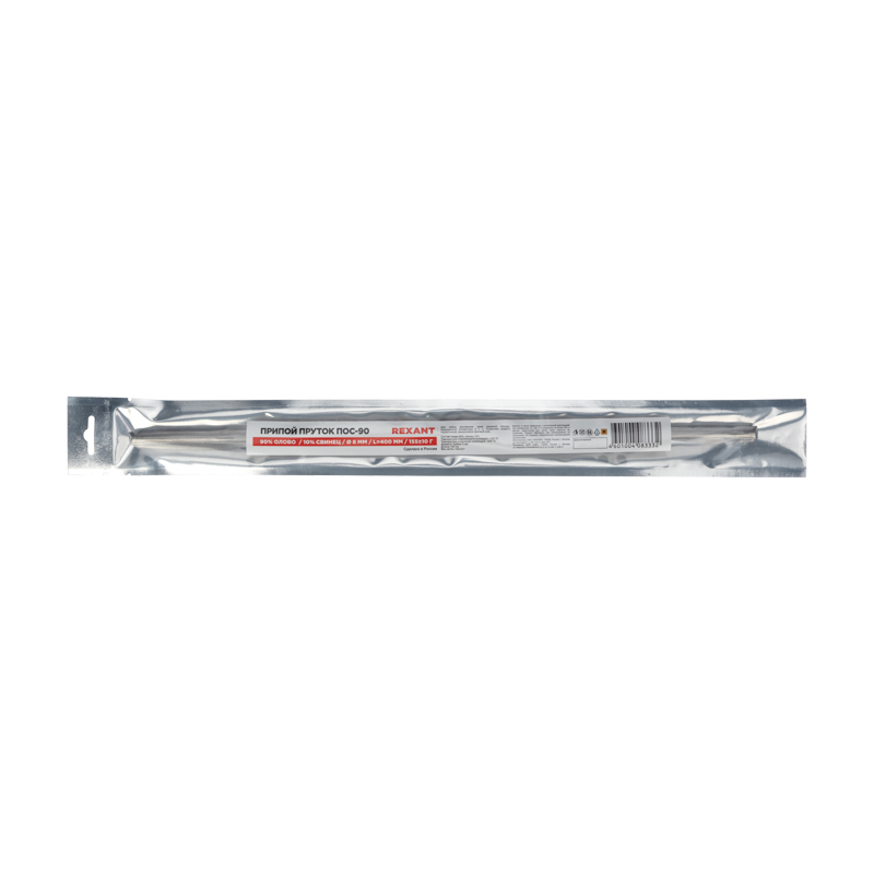 Припой пруток ПОС-90 Ø8 мм REXANT предназначен для создания механически прочного и герметичного соединения деталей между собой или для их фиксирования на плате (пайка и лужение радиоэлектронных приборов, медицинской аппаратуры, автодеталей, печатных плат, электроаппаратуры и т.д.).