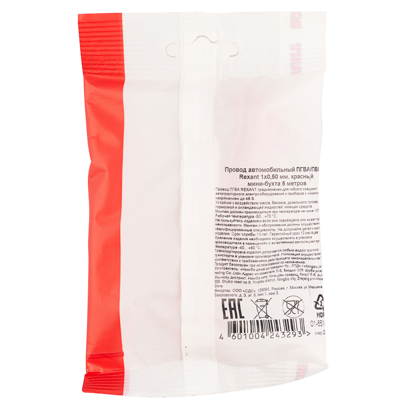 Цвет провода – красный, что позволяет легко идентифицировать его в проводной системе.