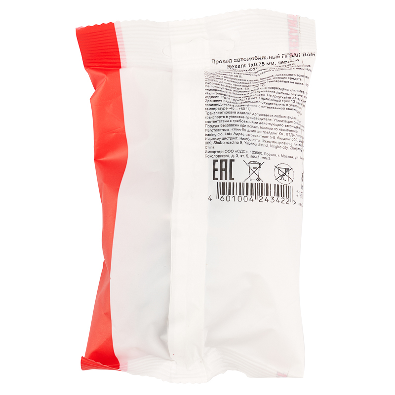 Цвет провода – черный, сечение – 1х0,75 мм, длина – 10 м.