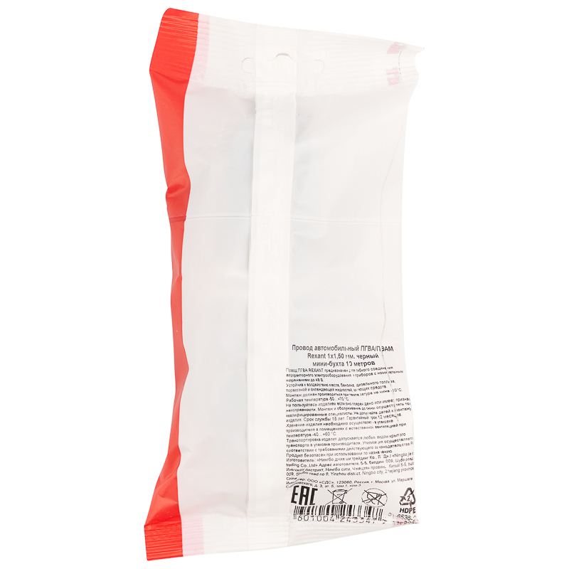 Цвет провода – черный, сечение – 1х1,50 мм, длина – 10 м.