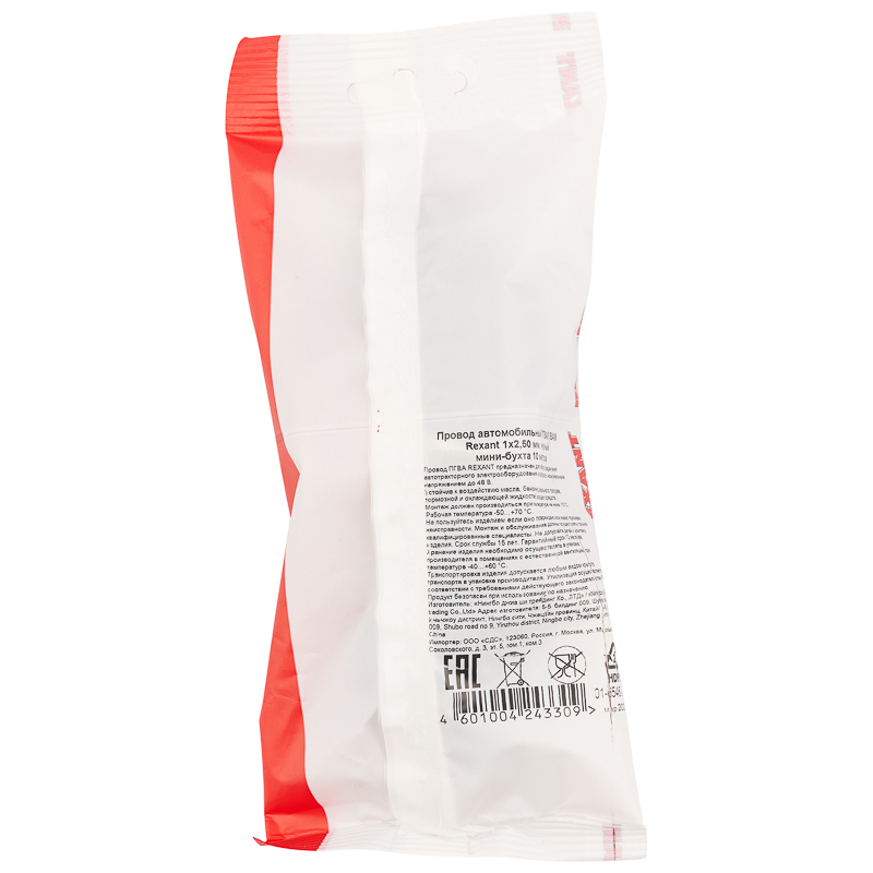 Цвет провода – черный, сечение – 1х2,50 мм, длина – 10 м.