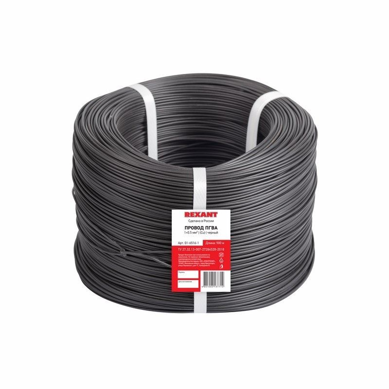Провод ПГВА 1х0,50мм², Cu, черный, бухта 500м REXANT