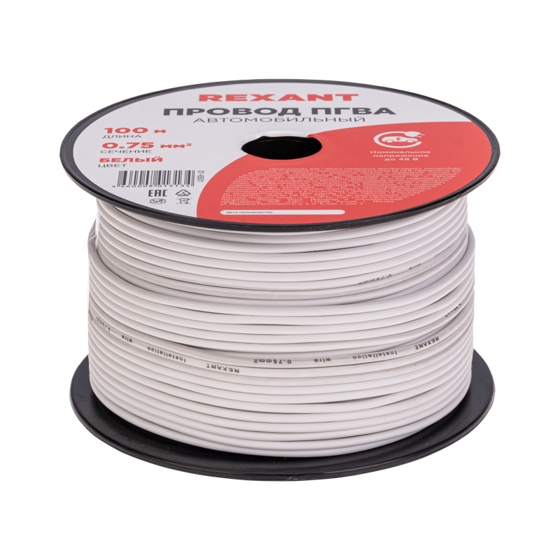Провод ПГВА 1х0,75мм², белый, бухта 100м REXANT
