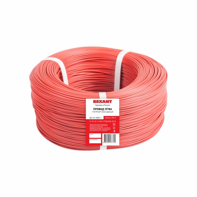 Провод ПГВА 1х0,75мм², Cu, красный, бухта 200м REXANT