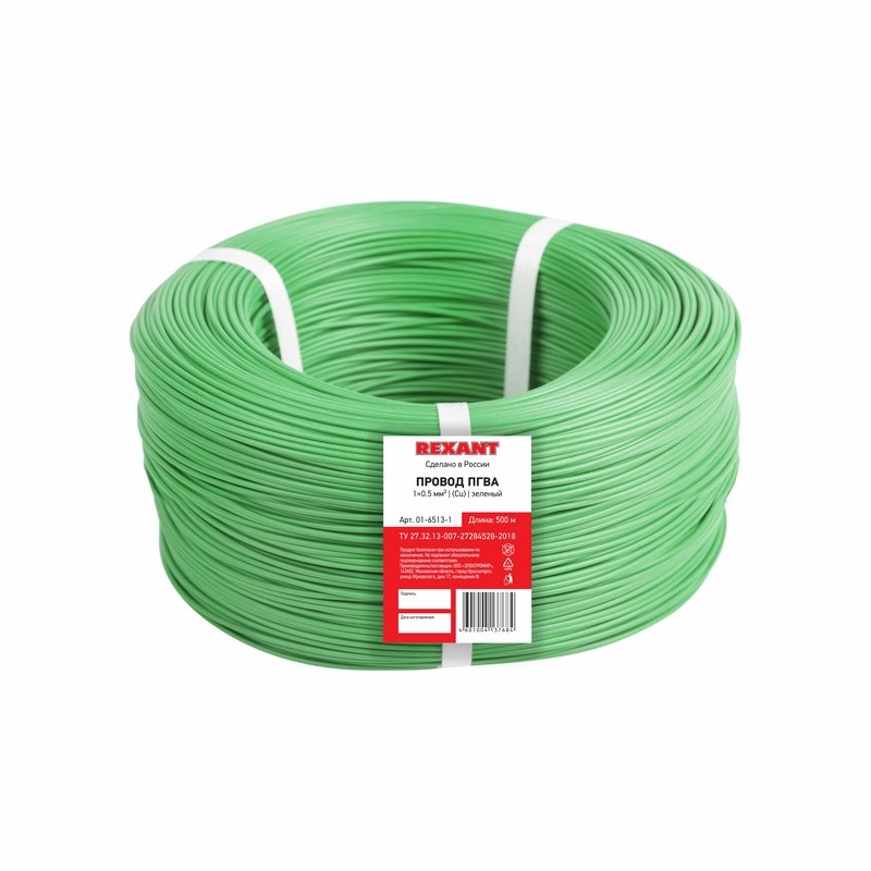 Провод ПГВА 1х0,75мм², Cu, зеленый, бухта 200м REXANT