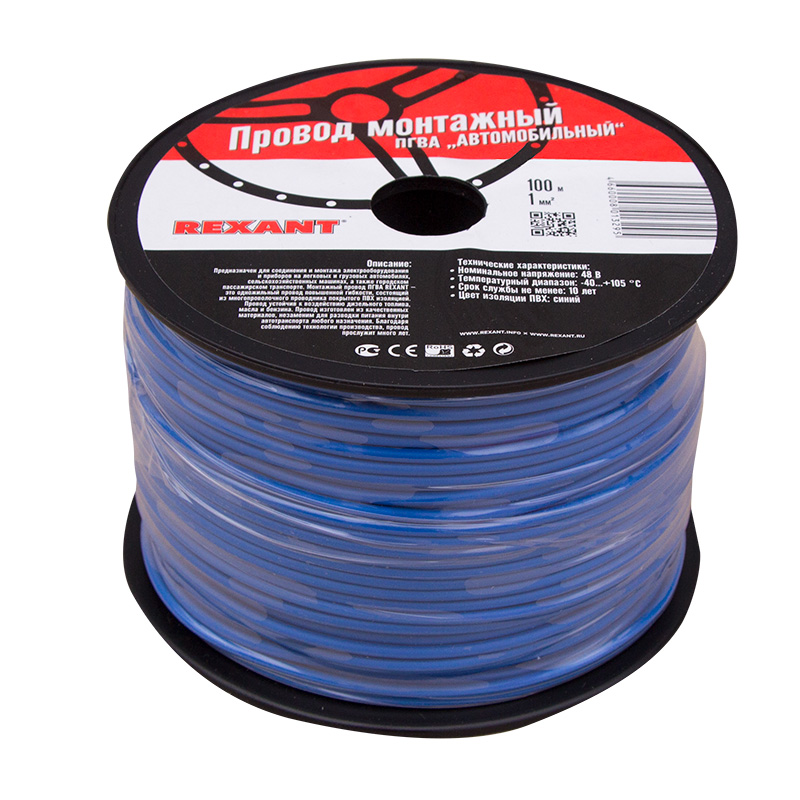 Провод ПГВА 1х1,00мм², синий, бухта 100м REXANT