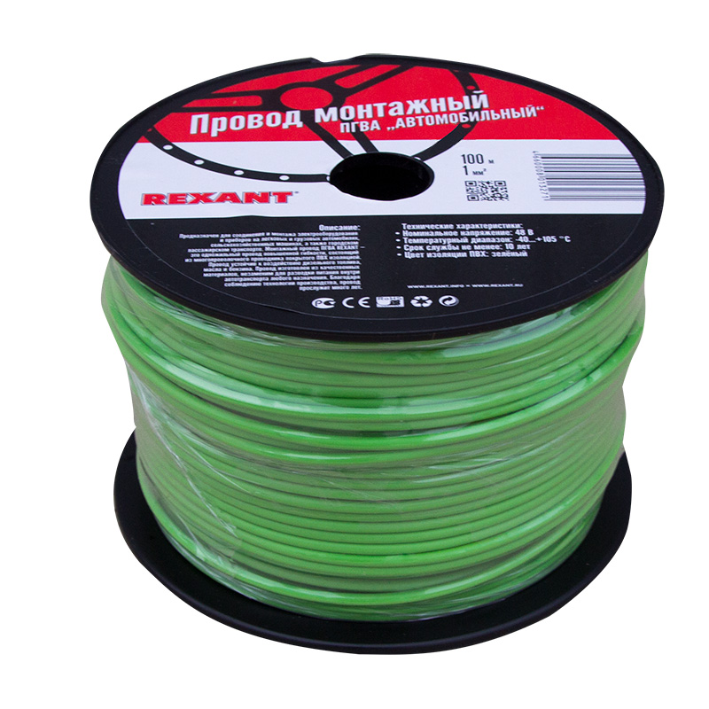Провод ПГВА 1х1,00мм², зеленый, бухта 100м REXANT