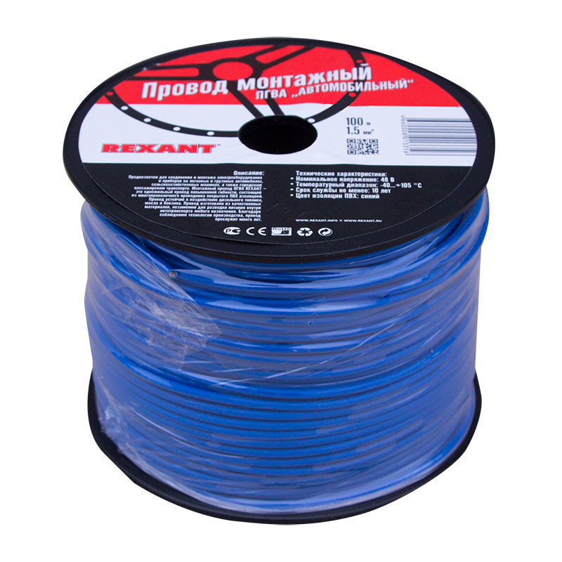 Провод ПГВА 1х1,50мм², синий, бухта 100м REXANT