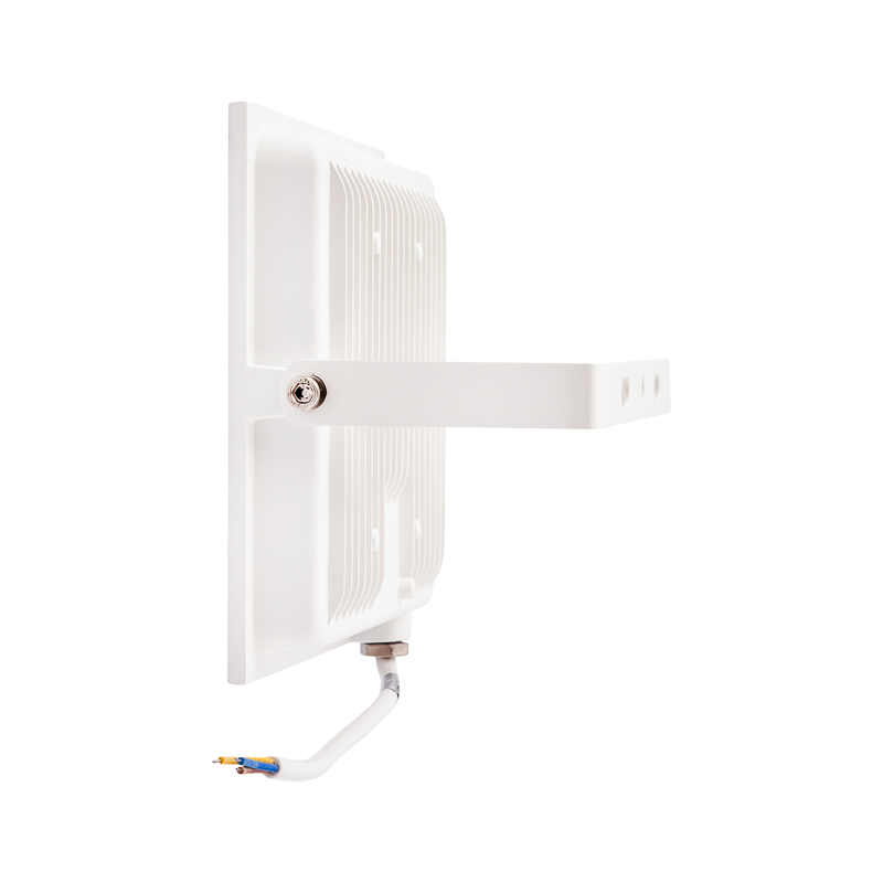 Цветовая температура свечения прожектора - 6500 К. Компактный ударопрочный корпус выполнен из алюминиевого сплава. В конструкции предусмотрен механизм поворотной скобы, позволяющий регулировать угол освещения.