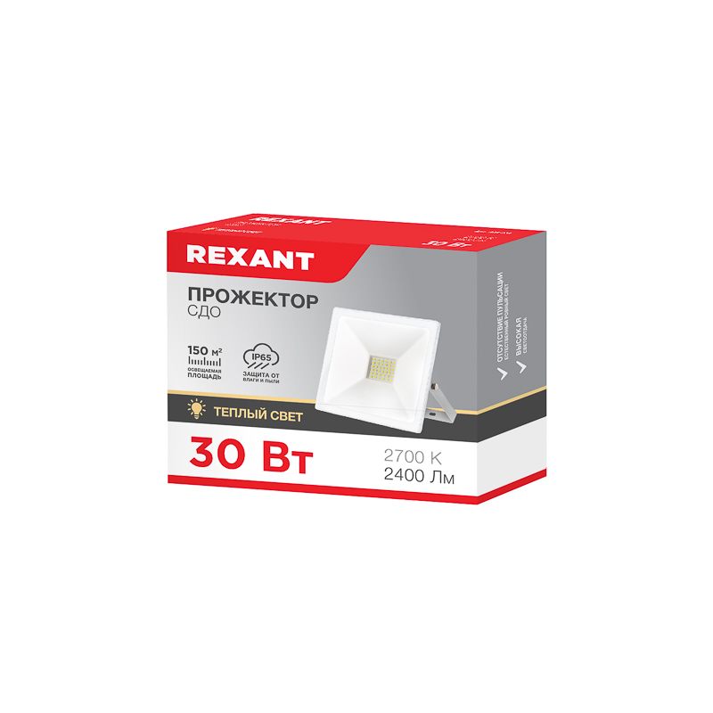 Светодиодный прожектор REXANT мощностью 30 Вт предназначен для наружного и внутреннего освещения. Благодаря высокому уровню герметичности (степень защиты IP65) прожектор может использоваться для наружного освещения памятников и инсталляций, рекламных объектов, фасадов зданий, детских и спортивных площадок, промышленных и складских помещений, внутренних дворов, придомовых территорий