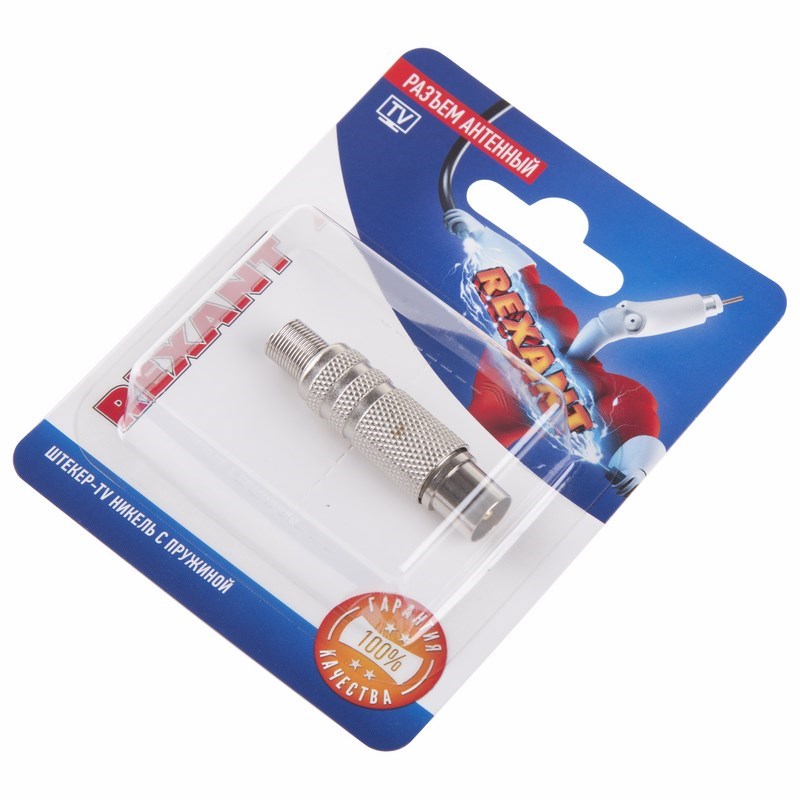 Никелированный TV-разъем штекер REXANT с пружиной предназначен для подключения эфирного, спутникового и кабельного телевидения с помощью радиочастотного кабеля.