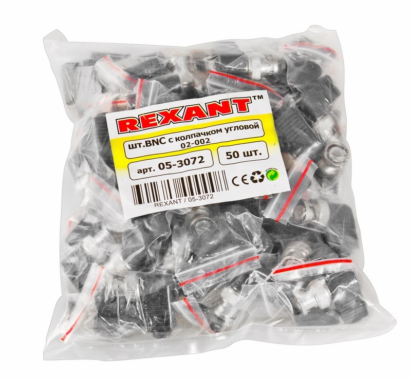 РАЗЪЁМ штекер BNC под винт с колпачком Угловой REXANT предназначен для подключения коаксиального кабеля c волновым сопротивлением 50 и 75 Ом, диаметром до 7 мм, к видеокамерам, видеорегистраторам, мониторам и другим радиоэлектронным устройствам. BNC-коннектор (BNC сокр. от Bayonet Neill Concelman) под винт угловой - электрический разъем с байонетной фиксацией закрепляется на кабеле зажимом с помощью винта центрального контакта (центральная жила - под винт, оплетка - обжимается). Угловое исполнение штекера позволяет его устанавливать в местах с ограниченным пространством для подключения кабеля. Этот способ крепления значительно проще и быстрее, чем пайка, но его надежность и качество соединения остаются на неизменно высоком уровне. Пластиковый колпачок защищает соединения и предотвращает кабель от перегиба в месте крепления к разъему. BNC-разъем изготовлен из материалов: