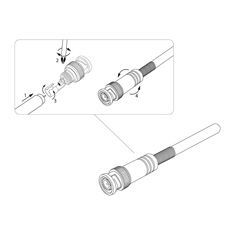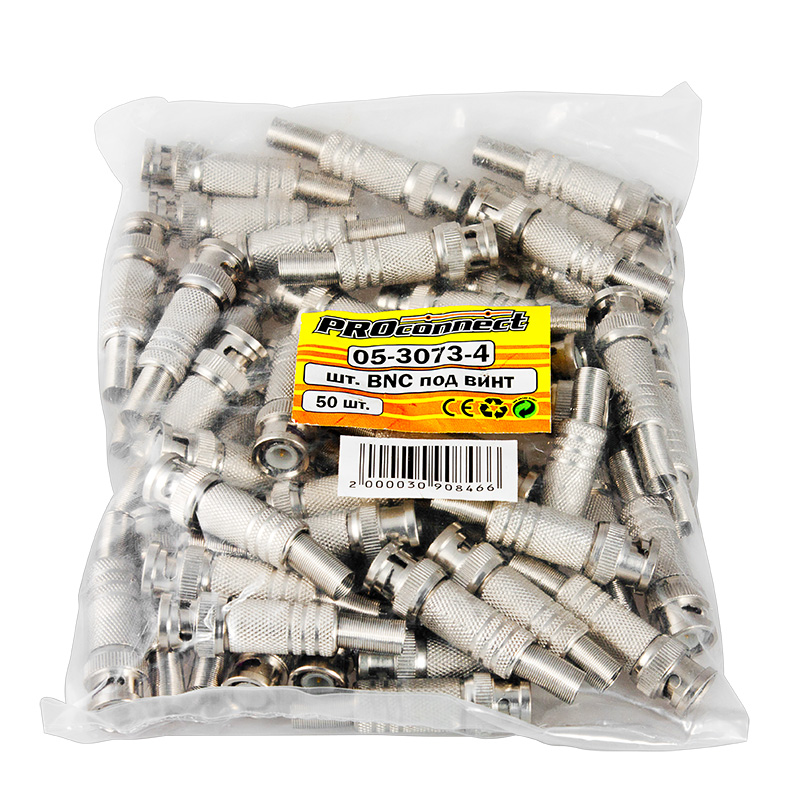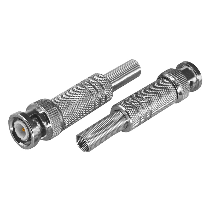 РАЗЪЁМ штекер BNC под винт с пружиной металл PROconnect предназначен для подключения коаксиального кабеля c волновым сопротивлением 50 и 75 Ом, диаметром до 7 мм, к видеокамерам, видеорегистраторам, мониторам и другим радиоэлектронным устройствам. BNC-коннектор (BNC сокр. от Bayonet Neill Concelman) под винт - электрический разъем с байонетной фиксацией закрепляется на кабеле зажимом с помощью винта центрального контакта (центральная жила - под винт, оплетка - обжимается). Этот способ крепления значительно проще и быстрее, чем пайка, но его надежность и качество соединения остаются на неизменно высоком уровне. Металлический колпачок с пружиной защищает соединения и предотвращает кабель от перегиба в месте крепления к разъему. BNC-разъем изготовлен из материалов: