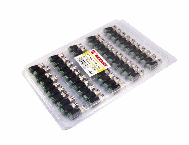 РАЗЪЁМ штекер BNC с клеммной колодкой REXANT предназначен для подключения коаксиального кабеля c волновым сопротивлением 50 или 75 Ом, к видеокамерам, видеорегистраторам, мониторам и другим радиоэлектронным устройствам. BNC-коннектор (BNC сокр. от Bayonet Neill Concelman) с клеммной колодкой - электрический разъем с байонетной фиксацией закрепляется на кабеле зажимом с помощью винтов. Этот способ крепления значительно проще и быстрее, чем пайка и обжим, но его надежность и качество соединения остаются на неизменно высоком уровне. BNC-разъем изготовлен из материалов: