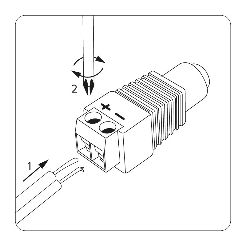 Такое двухконтактное гнездо монтируется на кабель с помощью винтовых зажимов и соединяется с штекером питания. Этот способ крепления значительно проще и быстрее, чем пайка, но его надежность и качество соединения остаются на неизменно высоком уровне.