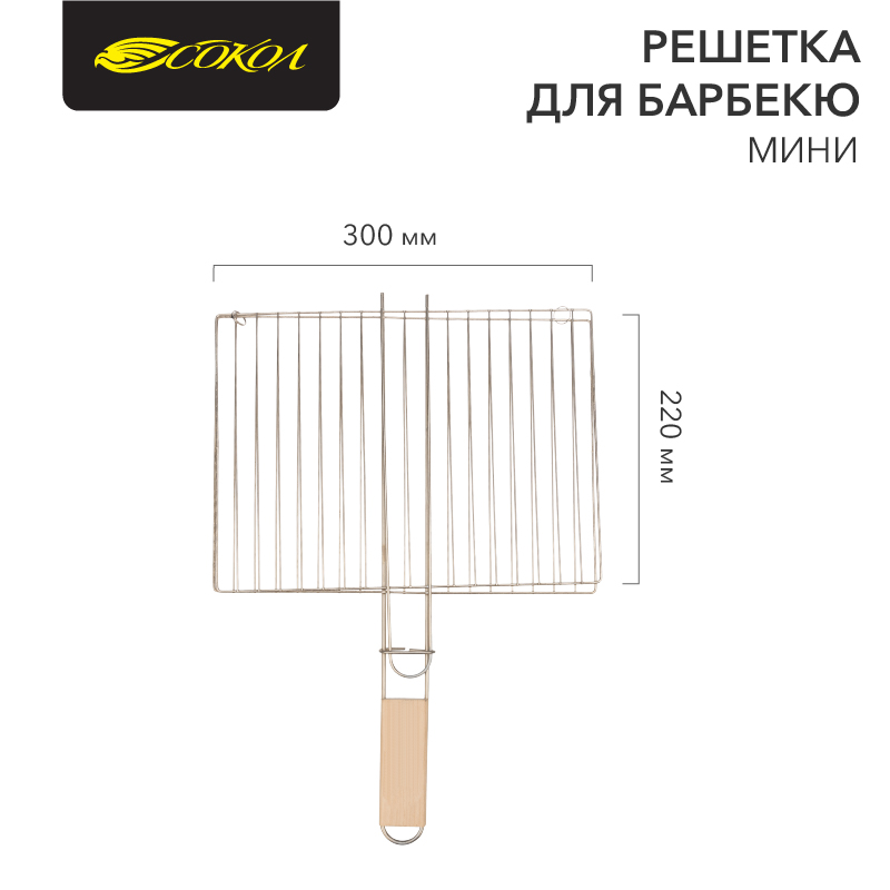 Решетка для барбекю СОКОЛ 30х22 см предназначена для приготовление овощей, грибов и мяса на огне. Выполнена из прочного металла с никелевым покрытием, которое предотвращает возникновение коррозии и потерю рабочих свойств.