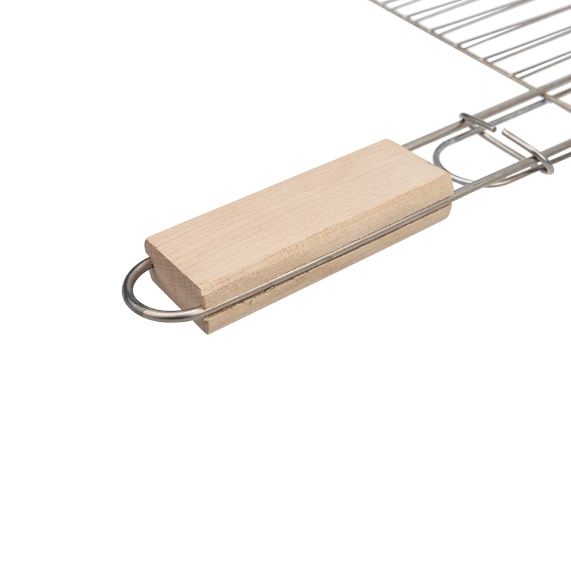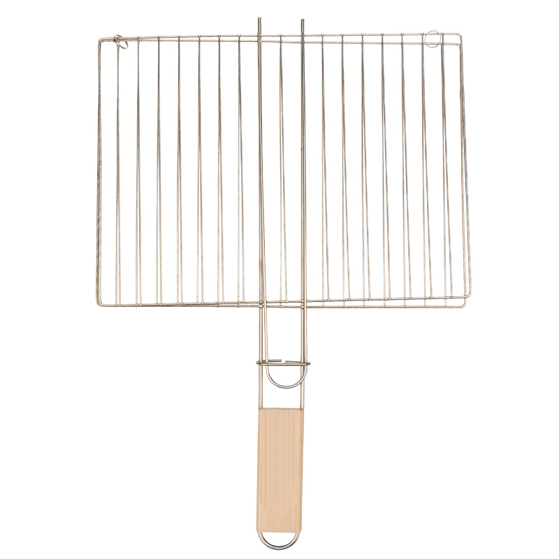 Ручка изготовлена из натурального дерева. Удобно лежит в руке и меньше нагревается, что позволяет легко переворачивать решетку при приготовлении, не боясь обжечься.