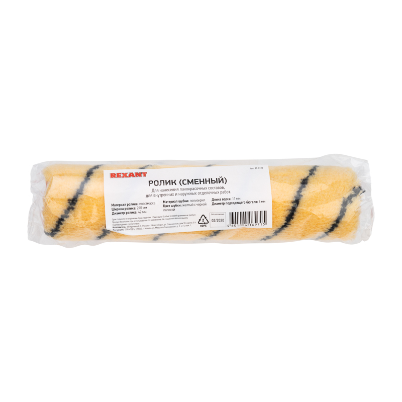 Ролик малярный торговой марки REXANT представляет собой рабочую часть валика: пластмассовый цилиндр, покрытый мягкой шубкой. Ролик легко монтируется на ручку REXANT артикул 89-0134 , а также применим и для других, подходящих по размеру ручек.