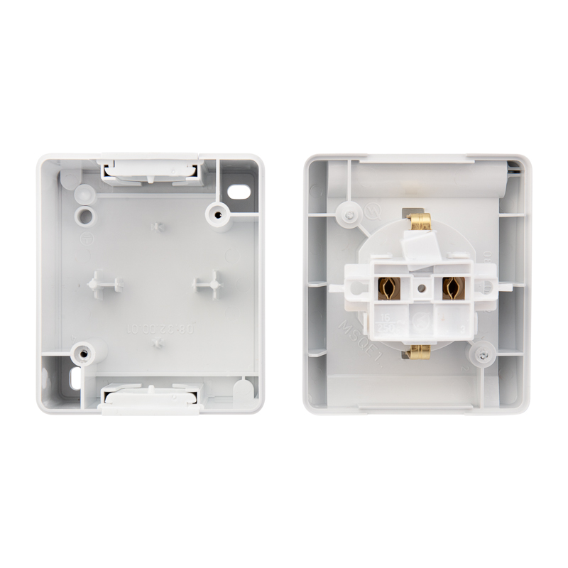 Защитная крышка на лицевой поверхности защищает розетку от попадания брызг воды. Розетка отлично подойдет для дачи, ванной комнаты, бассейна и улицы при наличии навеса, защищающего от прямого попадания влаги. С обеих сторон розетки находятся ступенчатые герметичные вводы, которые позволяют адаптировать изделие под различные диаметры кабеля.