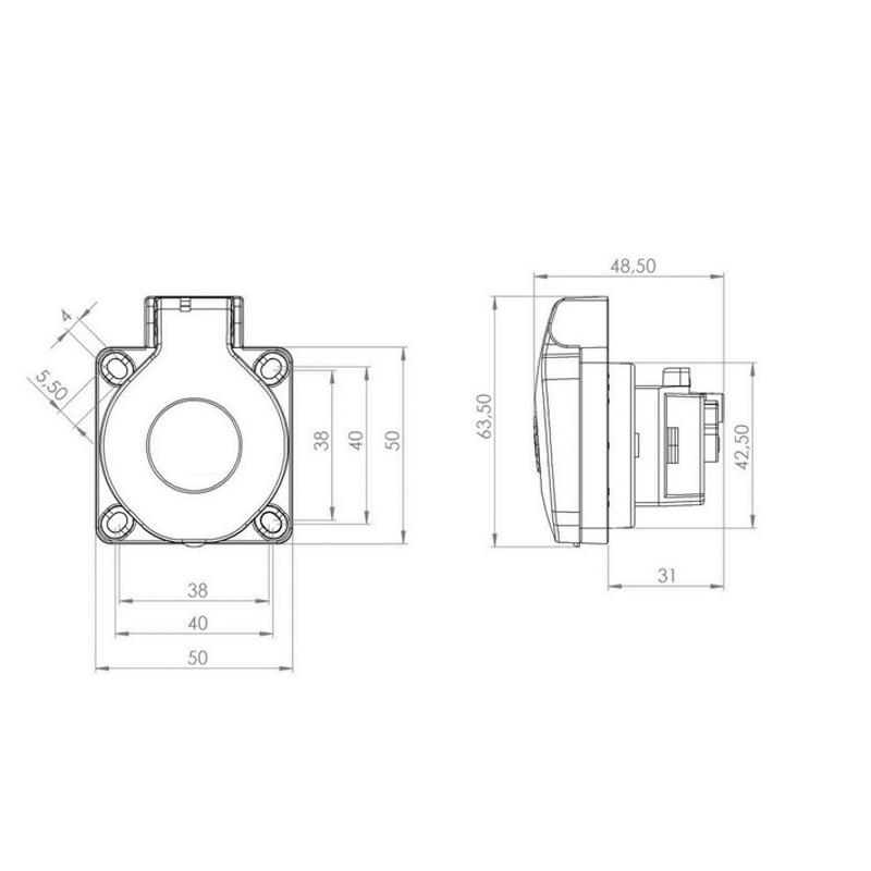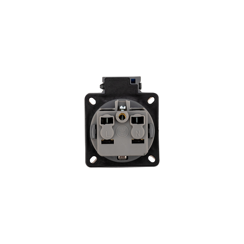 Розетка оснащена защитной крышкой. Для обеспечения безопасности детали, соприкасающиеся с токоведущими частями выполнены из огнеупорного материала, устойчивого к температуре до +850 ⁰С.