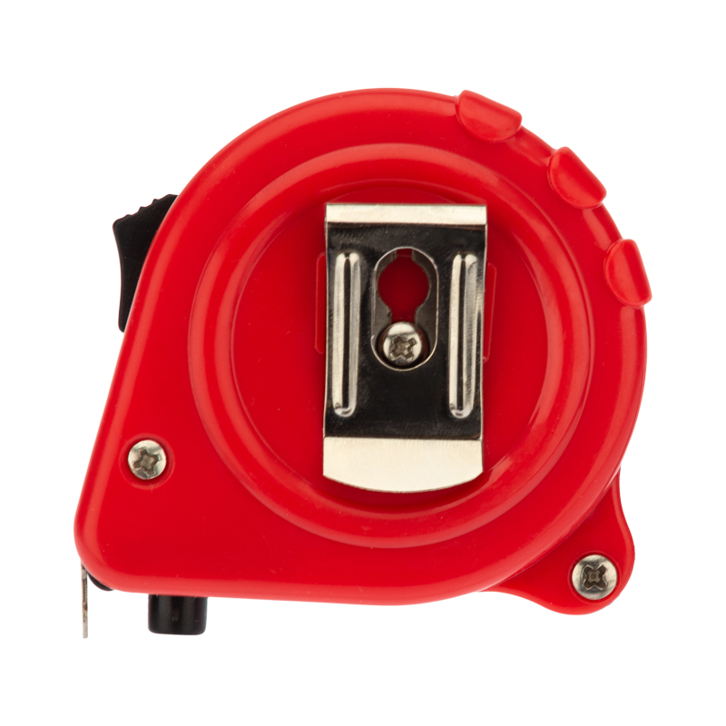 На корпусе расположена клипса-зажим для фиксации рулетки на ремне, кармане или поясной сумке. Ремешок позволяет надевать инструмент на запястье, чтобы освободить руки для работы.