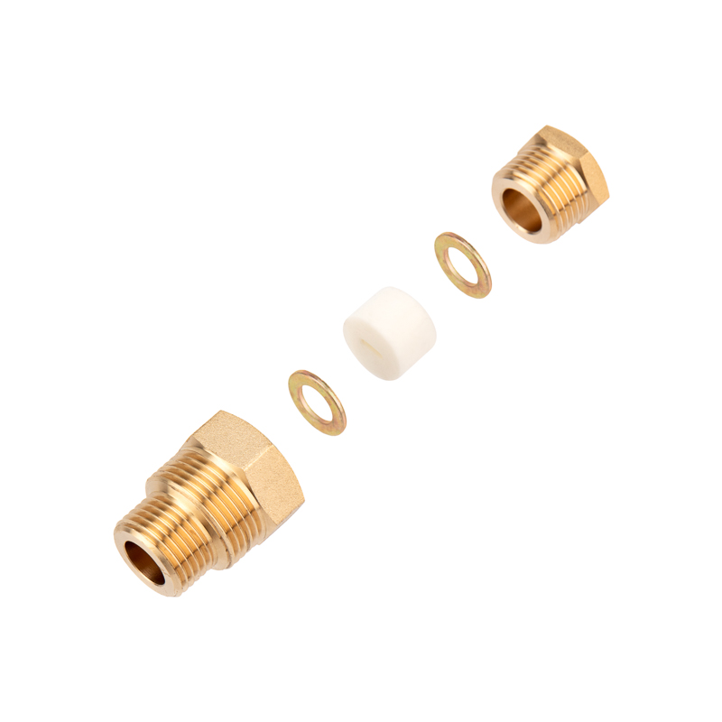 В составе комплекта поставляют: латунная втулка с внешней резьбой ½; латунные шайбы; уплотнение из силикона; латунная вставка к трубе с внутренней резьбой ½, внешней резьбой ½ и ¾.